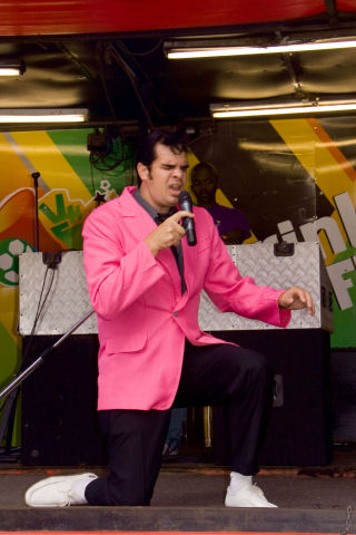 I started performing mostly at school concerts and small charity functions. One day a friend encouraged me to enter a karaoke competition. I got to the final round of the competition and won the second prize. I entered the National Elvis competition at Carnival City in 2003 which opened many doors for me as I was chosen as one of the best three Elvis Impersonators in the national competition and after that people took notice of my future performances and started booking me for private parties, events and shows. I have performed at many functions and shows over the past couple of years. My favorite Elvis periods are the 50's, and 60's, the Elvis Rock and Roll area and I enjoy impersonating Elvis with the Pink or Golden outfit. My Elvis tribute shows are broken up in three stages of his life and music for example; Elvis in the 50's, 60's and 70's.